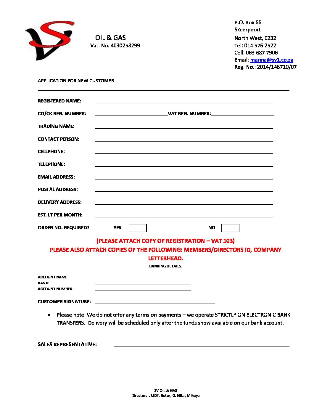 Application for new customer- Oil & Gas
